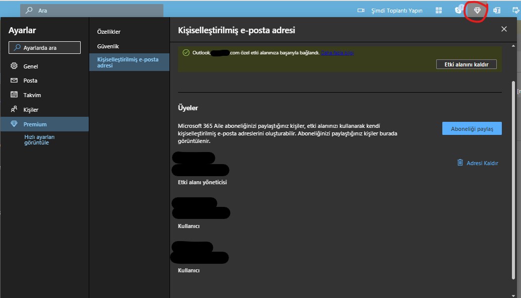 Microsoft Office 365 premium üyleri e-posta adresini kişiselleştirme imkanına sahip, godady ile yapılan entegrasyon sayesinde outlook hesabınıza giriş yaptıktan sonra sağ üst köşede bulunan premium üyelere özel elmas simgesine tıkladığınızda açılan menüden premium segmesine tıklamanız ardında etki alanı ekle linkine tıklamanız gerekiyor, link sizi godady hesabınıza giriş yapmanız için yönlendirecektir.Giriş yaptıktan sonra sahip olduğunuz alan adını seçtiğiniz de entegrasyon tamamlanacak ve alan adınızın kayı işlemleri tamamlandığında outlook hesabınızı kendi alan adınızla kullanmaya başlayabileceksiniz.Tabi bu işlemler öncesinde eğer yoksa godady den hesap oluşturmanız ve istediğiniz alan adını kiralamış olmanız gerekiyor.
