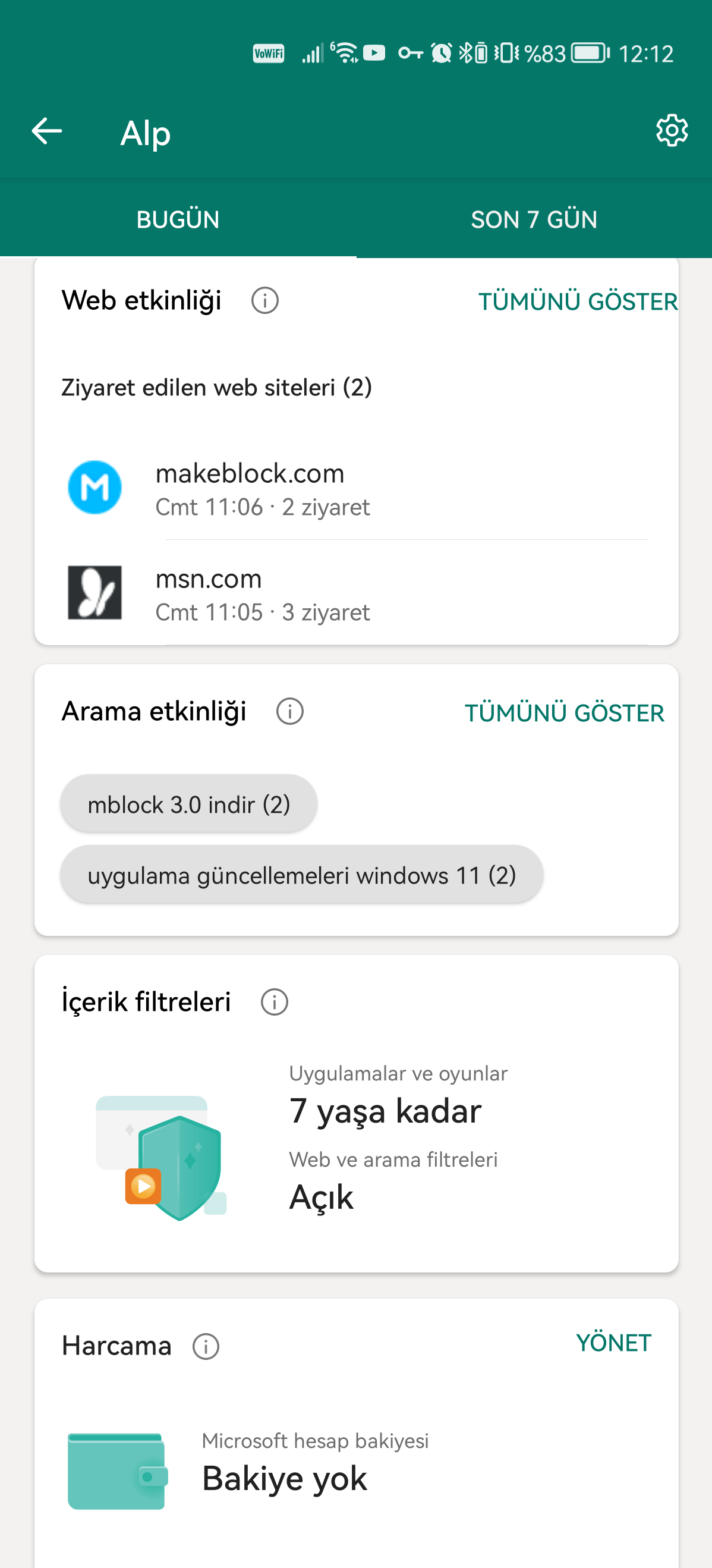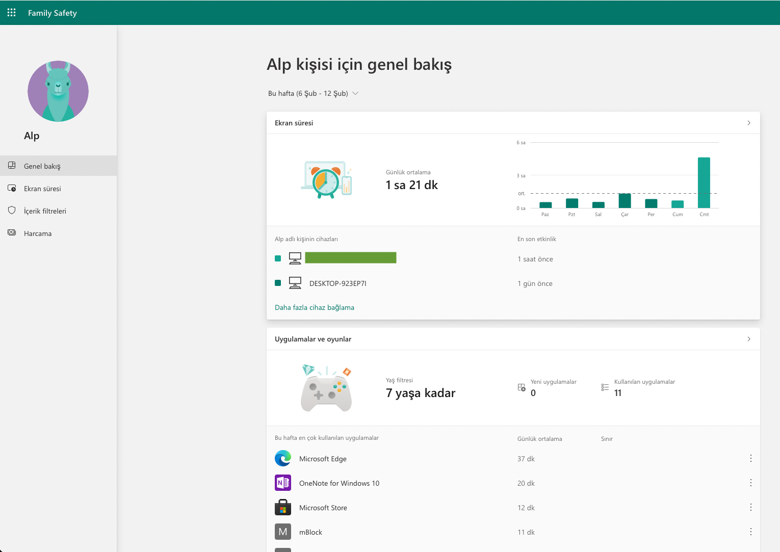 Tüm bunları yapabileceğiniz android ve iOS mobil uygulamalar da var, günlük süre sınırı koyabilir bu süreyi günün hangi saatleri arasında kullanabileceğini belirleyebilirsiniz.Çeşitli sebebler ile ek süre gerekli olursa çocuğunuz kullandığı cihaz üzerinden ek süre talebinde bulunabilir , bu talep size mobil uygulama yada mail yoluyla iletiliyor , talebi red edebilir yada 15dk, 30dk, 1saat gibi ön tanımlı sürelerden birini seçerek ek süre verebilirsiniz.Aynı şekilde uygulama yüklemeke yada yaşına uygun olmayacak şekilde derecelendirilmiş bir uygulama açmak yada web sitesini ziyaret etmek istediğinde sizden talebte bulunabilir.Tüm bunları Microsoft aile hesabınızda tanımlı evebeynlerden herhangi biri yapılır.